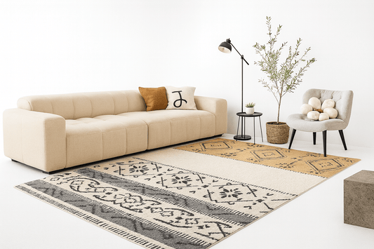 Alfombra Boho Étnica en Tonos Neutros y Grises 160x230 cm