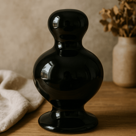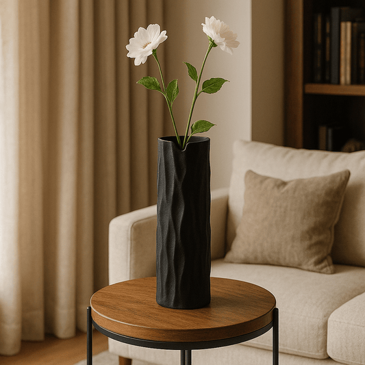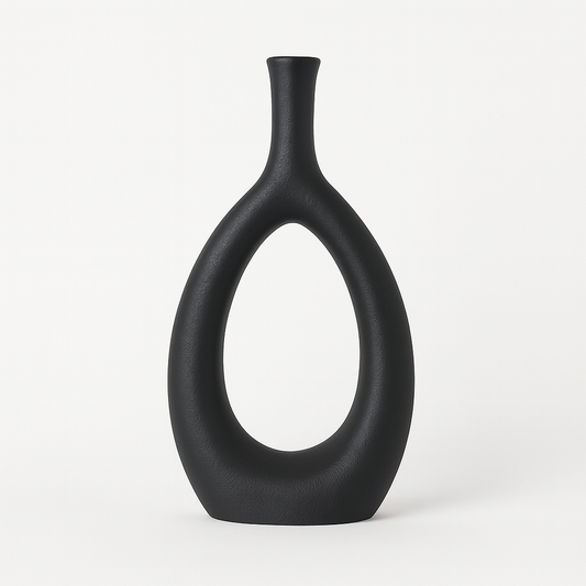 Florero Decorativo Moderno de Cerámica Negra – Diseño Escultural Minimalista