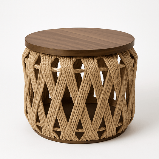 Proveedor:KB HomeMesa Centro o Auxiliar de Yute y Madera – Estilo Natural | Disponible en Tamaño Mediano y Grande