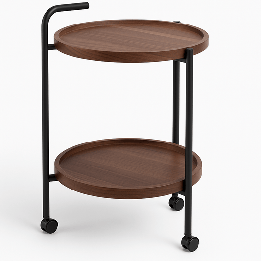 Mesa Auxiliar Tipo C con Ruedas – Diseño Moderno en Madera y Metal