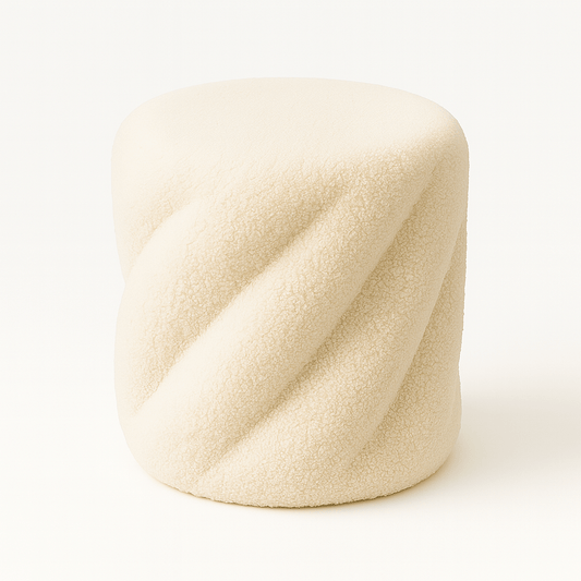 Reposapiés Redondo de Bouclé con Patas de Madera – Estilo Nórdico Moderno