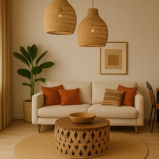 Proveedor:KB HomeMesa Centro o Auxiliar de Yute y Madera – Estilo Natural | Disponible en Tamaño Mediano y Grande