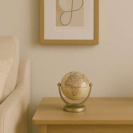 Globo Terráqueo Decorativo Vintage 14x10cm con Base Dorada | Mapamundi de Escritorio