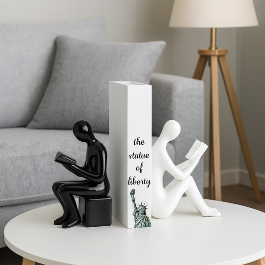 Pack Decorativo con Estatuas Minimalistas en Blanco y Negro + Libro Estatua de la Libertad – Moderno y Elegante