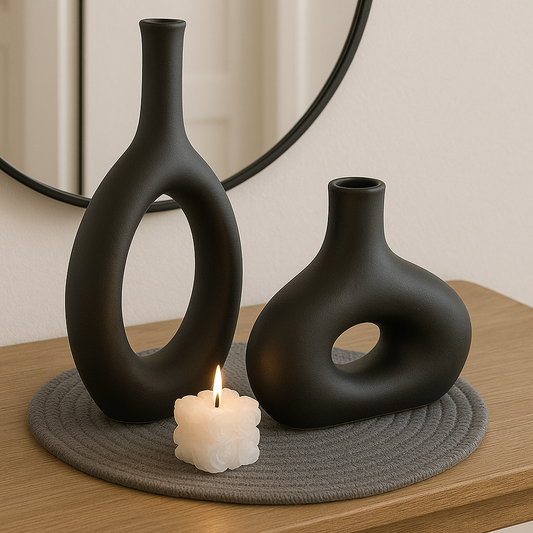 Pack Decorativo de Jarrones Modernos Negros con Vela – Estilo Minimalista para Sala y Mesa”+ ENVIO GRATIS + REGALO SORPRESA 🎁