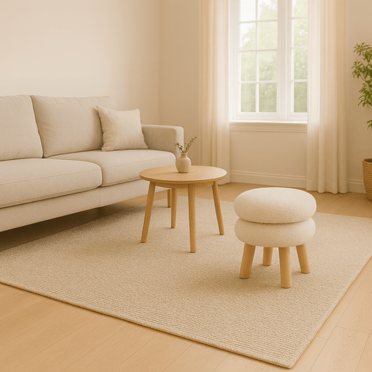 Reposapiés Redondo de Bouclé con Patas de Madera – Estilo Nórdico Moderno