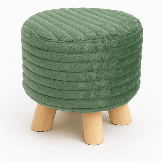 Reposapies Redondo Verde Oliva con Patas de Madera