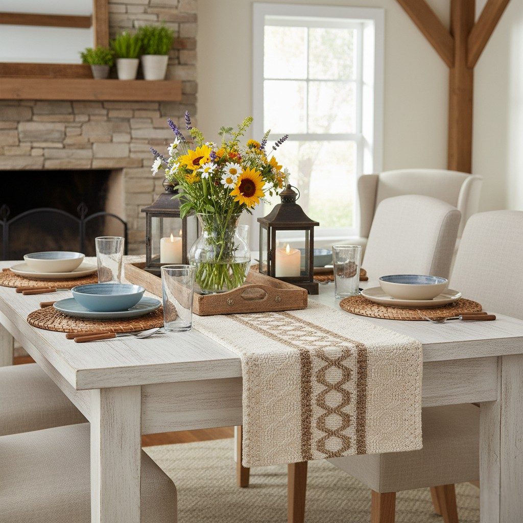 Camino de Mesa Decorativo - Beige y Marrón