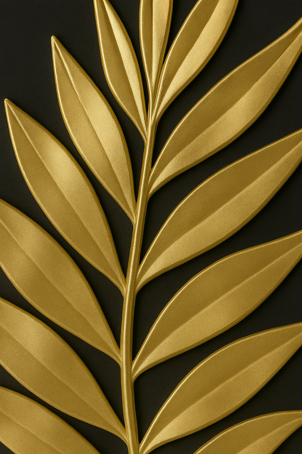 ✅ Hoja dorada en relieve 3D con acabado brillante.
