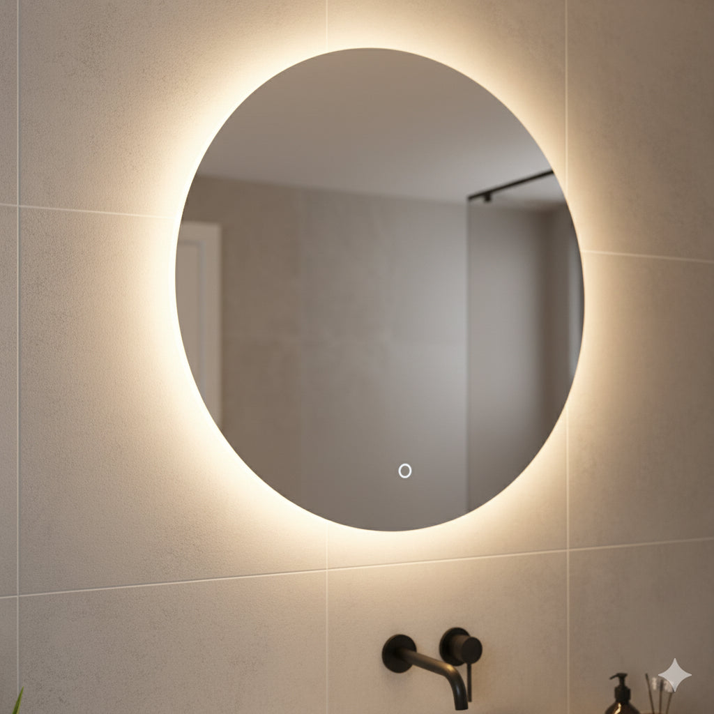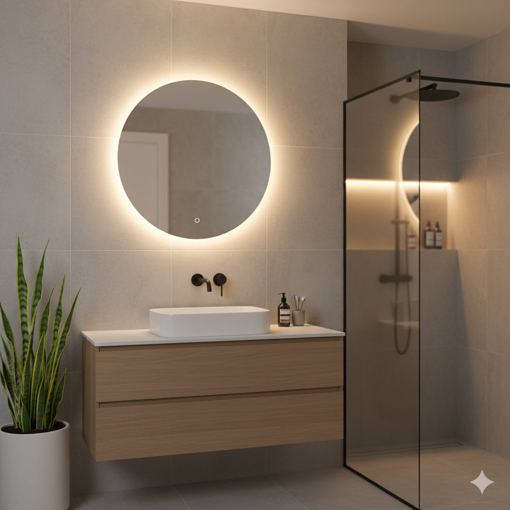Un espejo que combina diseño y tecnología. Su forma circular clásica se realza con la iluminación LED perimetral, creando un halo de luz suave ideal para baños, tocadores o recibidores. Incorpora pantalla digital con reloj y temperatura, perfecto para quienes buscan funcionalidad y estilo en un solo producto.