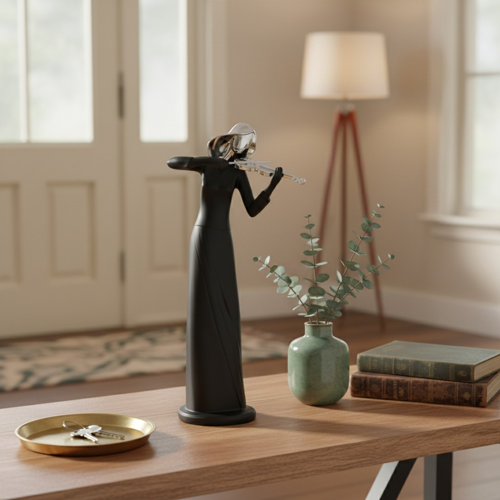 “Una pieza elegante y llena de personalidad. La pose de la violinista y los detalles metálicos le dan un toque único.” — Cliente satisfecho