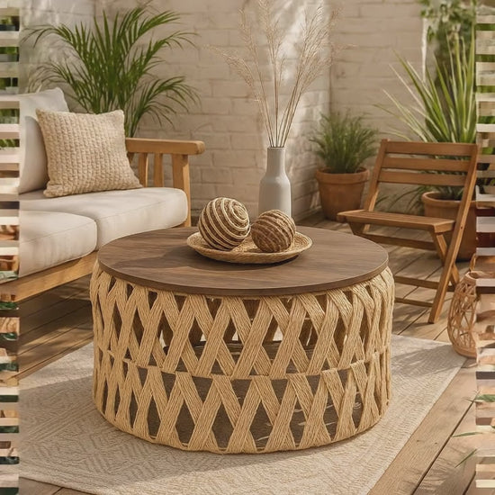 Mesa Centro o Auxiliar de Yute y Madera – Estilo Natural | Disponible en Tamaño Mediano y Grande + REGALO SORPRESA🎁