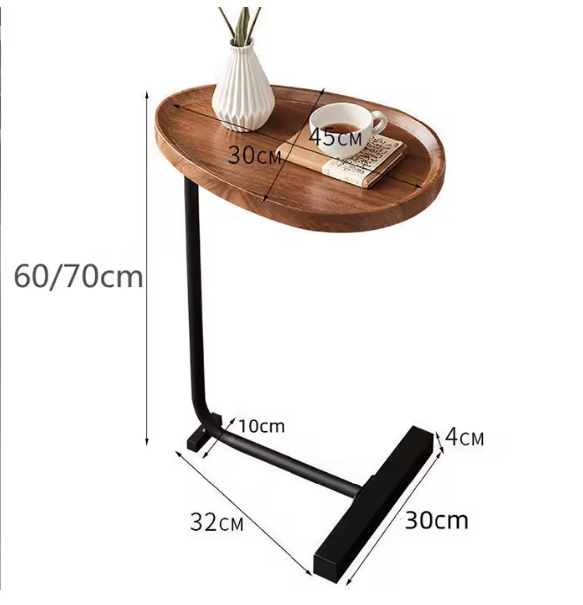 Mesa Auxiliar Tipo C Ovalada de Madera y Metal – Diseño Moderno y Funcional