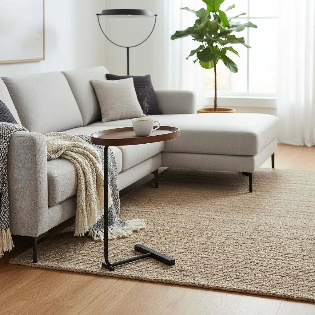 Mesa Auxiliar Tipo C de Madera y Metal – Diseño Moderno y Funcional