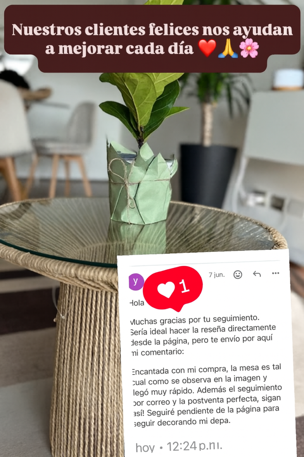 “Son mucho más bonitas en persona. Le dan un toque natural y elegante a mi living. ¡Las recomiendo totalmente!” — Cliente feliz